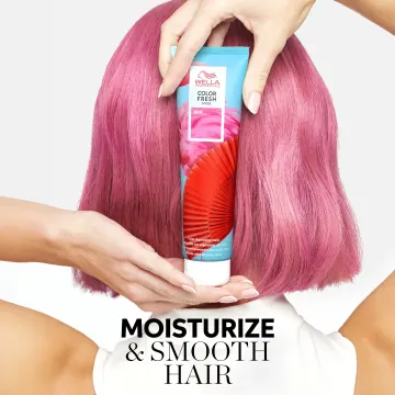 Wella Professionals Color Fresh Mask är en färginpackning och glansbehandling som bevarar, omvandlar eller förstärker färgen hos salongsbehandlat hår, utan att skada eller slita på håret. Inpackningen vårdar håret och ger en färg som gradvis bleknar i samband med hårtvätt. Synliga resultat fås efter endast 10 minuter och behandlingen kan upprepas en gång i veckan för att behålla färgen. För att få en mer intensiv färg kan inpackningen verka i upp till 20 minuter. Berikad med avokadoolja och har en vårdande formula som gör att håret känns mjukt och återfuktat efter behandlingen. Vegansk. 150 ml. Finns i 14 nyanser: • Caramel Glaze är perfekt för att återuppliva mellanblonda och bruna balayage-nyanser. • Chocolate Touch passar för att återuppliva brunt hår med bruna chokladtoner. • Copper Glow är perfekt för att återuppliva och bevara koppartoner. • Golden Gloss återupplivar ljusblont och slingat hår med gyllene toner. • Lilac Frost har formula som neutraliserar gula toner och passar perfekt för blekt hår och ljusare nyanser. • Pearl Blonde är perfekt för blekta och mycket ljusa blonda nyanser för att bevara en platinafinish utan att dramatiskt förändra tonen. • Red är perfekt för att förvandla blont hår eller för att bevara en intensivt röd hårfärg. • Rose Blaze passar för att skapa djuprosa toner i mellanblont och blekt hår. Ju ljusare hår, desto starkare färg. • Peach Blush passar för förblekta och ljusare toner eftersom den ger strålande värme till blont hår. • Cool Espresso passar för att återuppliva brunt hår med en elegant fyllig chokladton. • Pink Blush passar för att återskapa nyansen i hår som är färgat i ljusrosa toner. • Pink passar för att återuppliva tonen i hår som har en färgstark rosa nyans. • Blue är perfekt för att förvandla förblekt hår eller för att bevara Color Fresh Create New Blue intensivtoning. • Mint gör ett statement eller en uppfräschning och bevara en fräsch mintfärg.