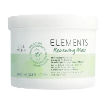 Wella Professionals Elements Renewing Mask är en intensivt återfuktande hårinpackning. Håret återfuktas på djupet och skyddas mot frissighet och avbrutna hårstrån. Resultatet blir ett mjukt och glansigt hår. Passar alla hårtyper, men är speciellt lämpligt för färgbehandlat, keratinbehandlat eller kemiskt behandlat hår. Denna återfuktande hårinpackning är tillverkad av 95 % ingredienser av naturligt ursprung. 500 ml.