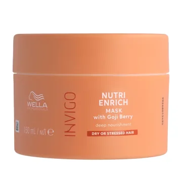 Wella Professionals Invigo Nutri Enrich Mask är en djupt återfuktande hårinpackning speciellt utformad för att behandla torrt och skadat hår. Berikad med Nutri-Enrich-Blend™, oleinsyra och pantenol som ger håret omedelbar återfuktning och näring, den innehåller även gojibär, en ingrediens som är känd för att vara extremt rik på vitaminer, mineraler och peptider. 150 ml.