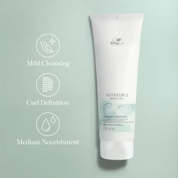 Wella Professionals Nutricurls Cleansing Conditioner är ett rengörande balsam för vågigt och lockigt hår. Ersätt schampot med Cleansing Conditioner varannan tvätt eller oftare. Berikad med vetekliextrakt och jojobaolja som minskar frissighet, gör håret mjukt och lätt att hantera. 250 ml.